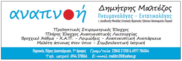 Στο ιατρείο εκτελείται πλήρης εργαστηριακός έλεγχος αναπνευστικής λειτουργίας(Οξυμετρία, Ροομετρία, Σπιρομέτρηση προ & μετά βρογχοδιαστολή, μελέτη απνοιών στον ύπνο),ως επίσης πλήρης προεγχειρητικός Έλεγχος.