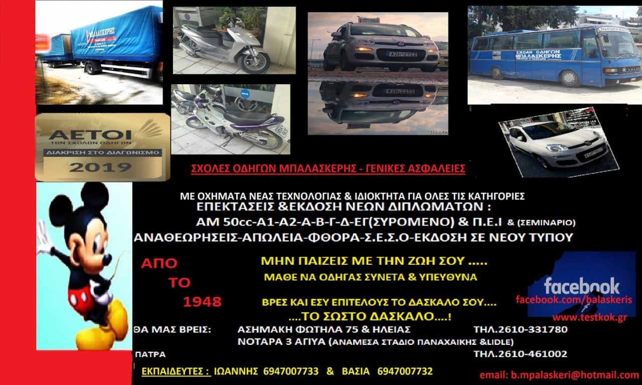 ΚΑΙ ΜΑΛΙΣΤΑ Η ΠΡΩΤΗ ΣΧΟΛΗ ΟΔΗΓΩΝ ΠΟΥ ΑΝΟΙΞΕ ΣΤΗΝ ΠΑΤΡΑ, ΑΦΟΥ ΛΕΙΤΟΥΡΓΕΙ ΑΠΟ ΤΟ 1948!!